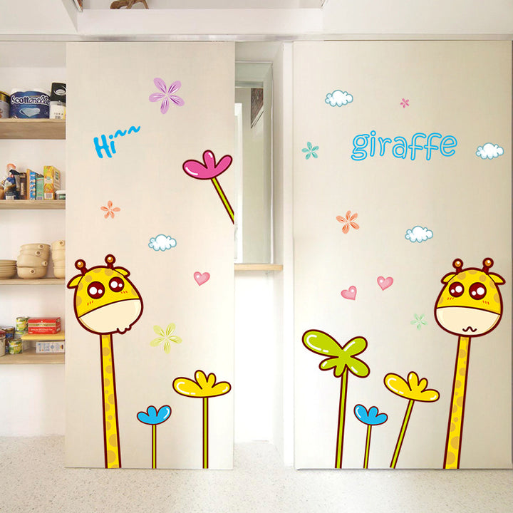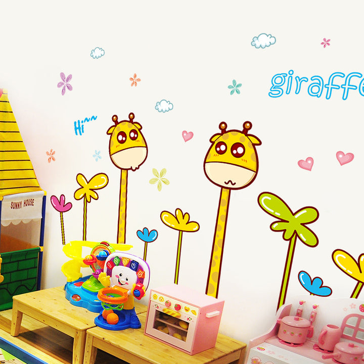 Wall sticker two giraffes animation children's room self-adhesive removable background wall sticker decorative wall sticker XL7197