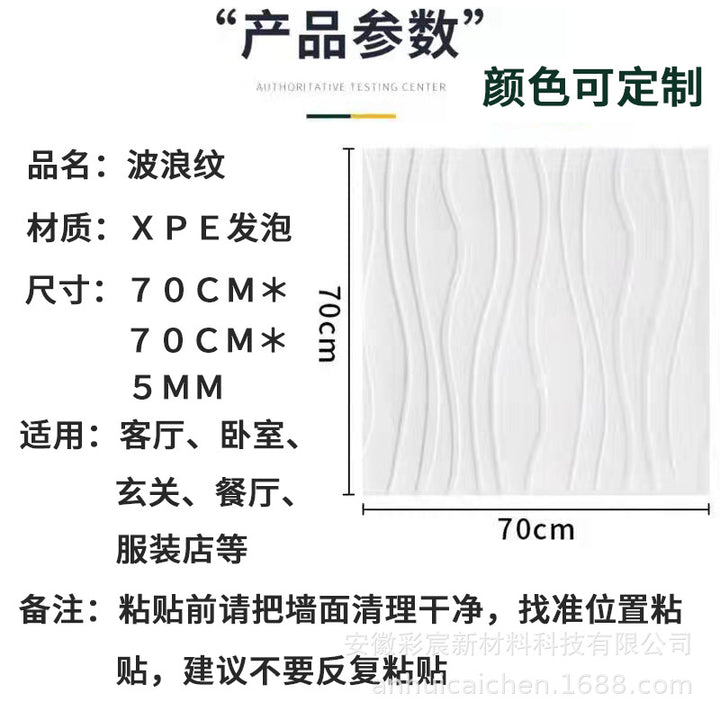 Wall sticker, waterproof and oil-proof self-adhesive wallpaper 3D three-dimensional bedroom can wipe the background wall wave pattern decorative wa...