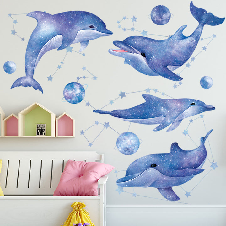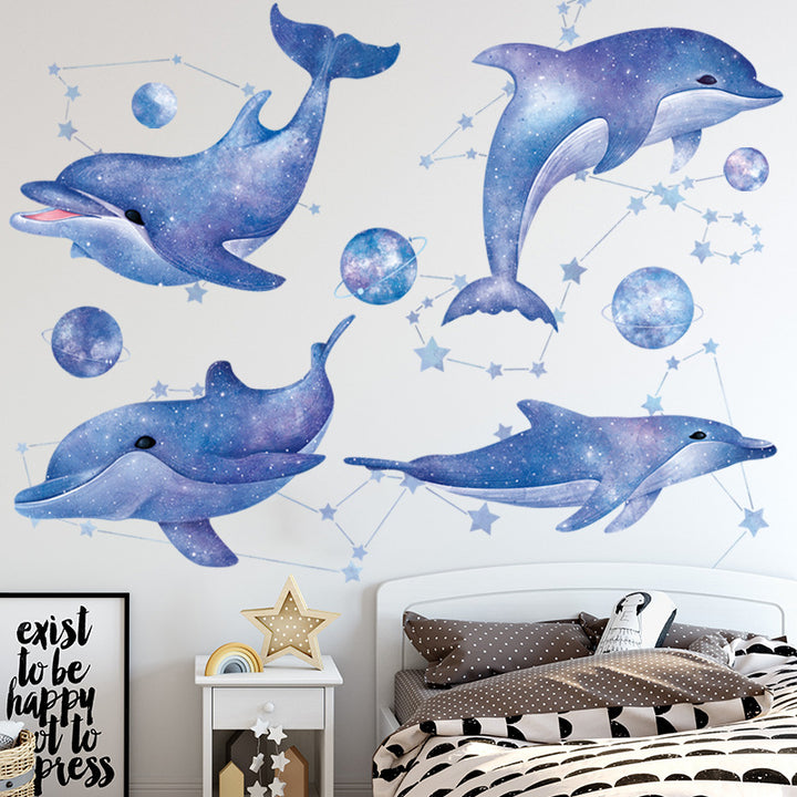 Wall stickers cute dolphins and whales classroom layout stickers starry sky dream wall decora...