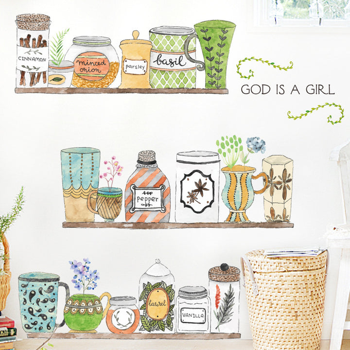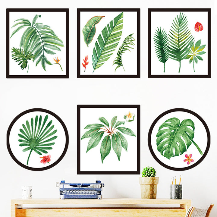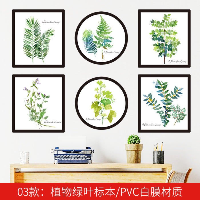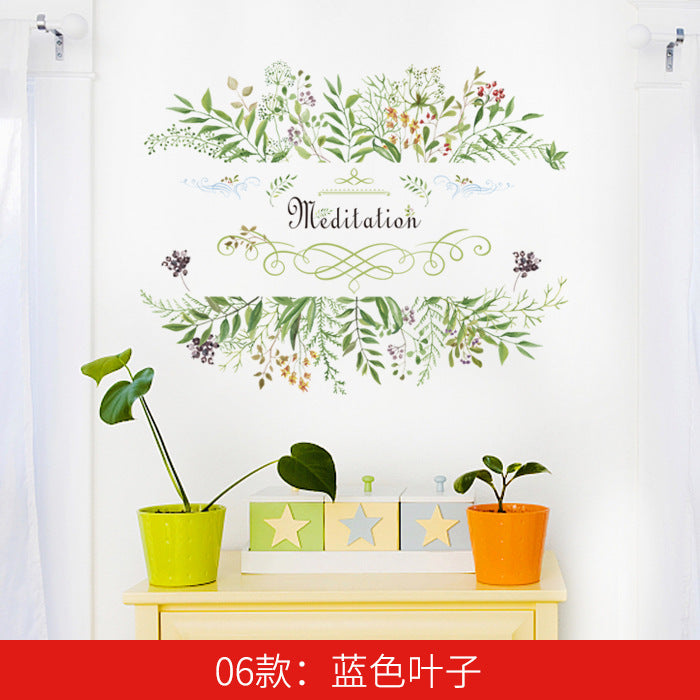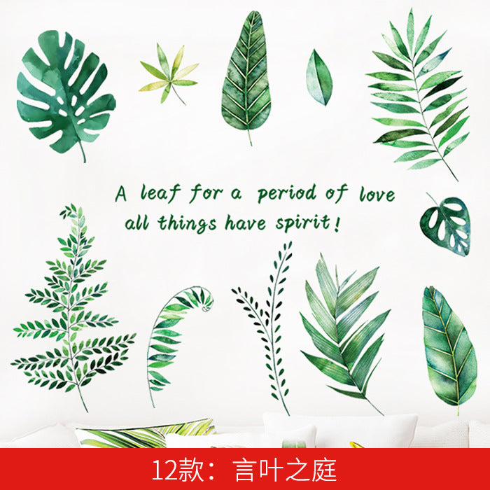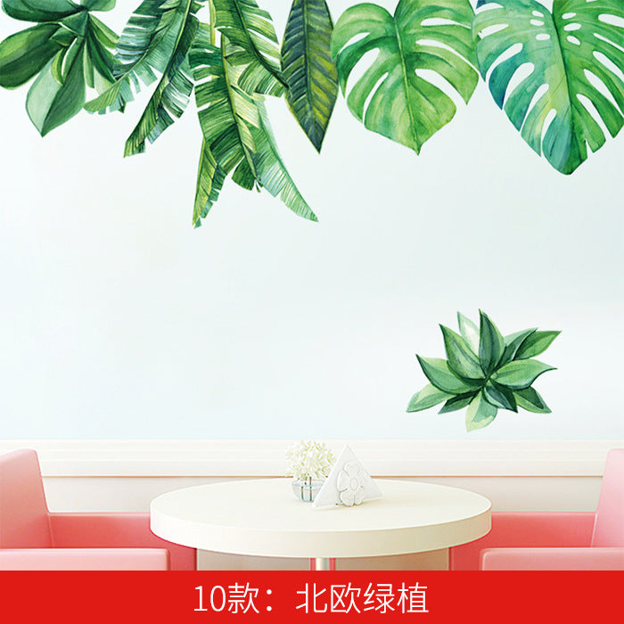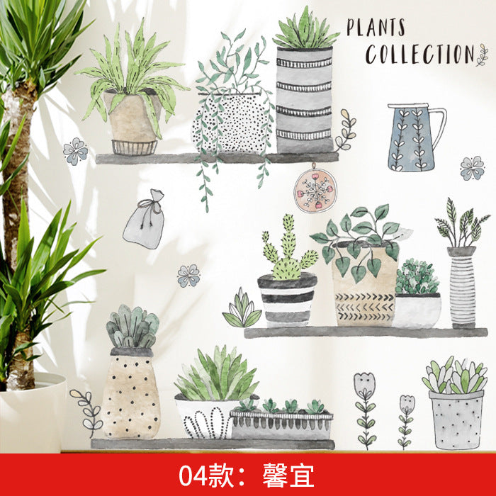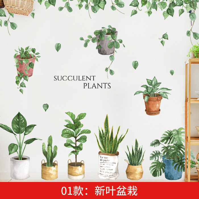 Wall stickers green leaves potted plants succulent literary and fresh living room bedroom dormitory plant stickers Nordic wall flowers self-adhesive