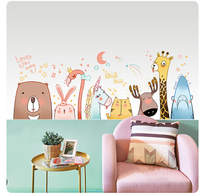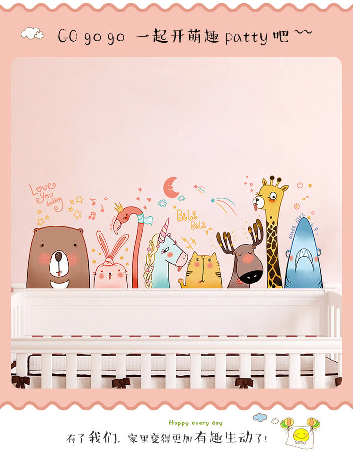 Wall stickers ins wind cute cartoon animal wall stickers children's room decoration living room sofa background arrangement XH9316
