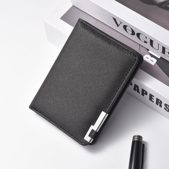 Wallet Men's Short Wallet Iron Edge Cross Pattern Men's Multi-Card Wallet Card Bag, Wallet Me...