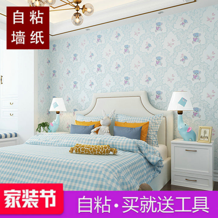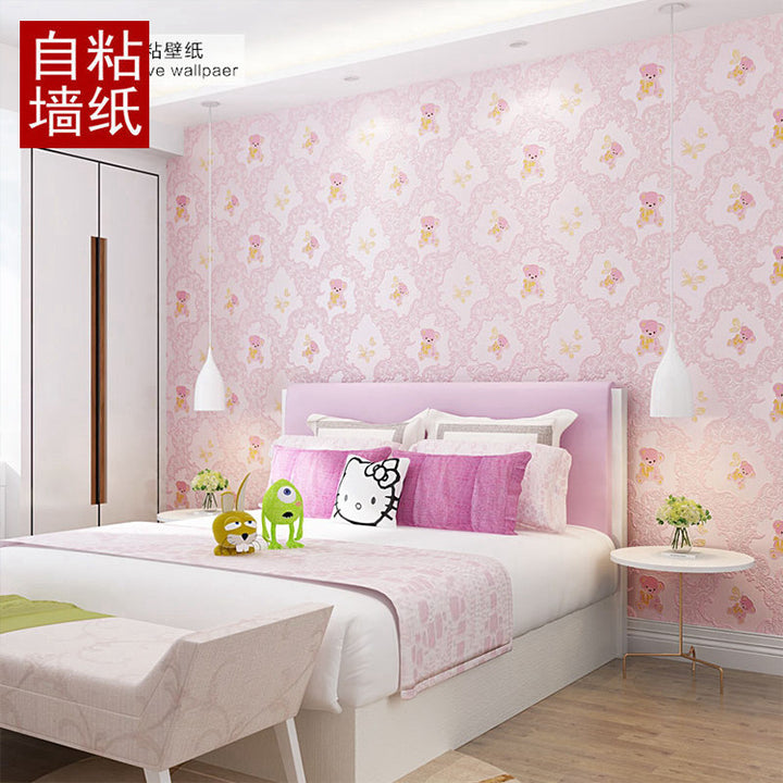 Wallpaper Self-adhesive bedroom warm cartoon room decoration wallpaper 3D three-dimensional w...