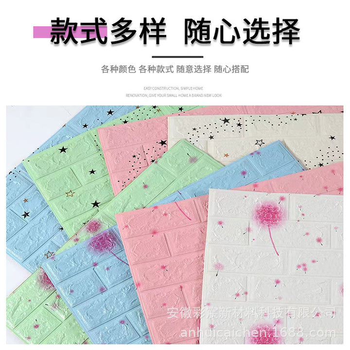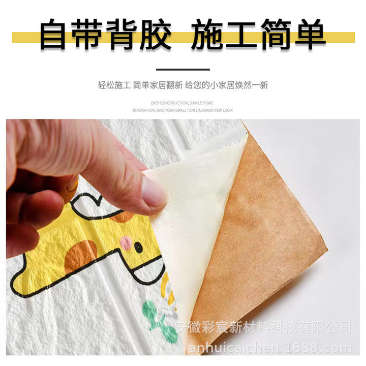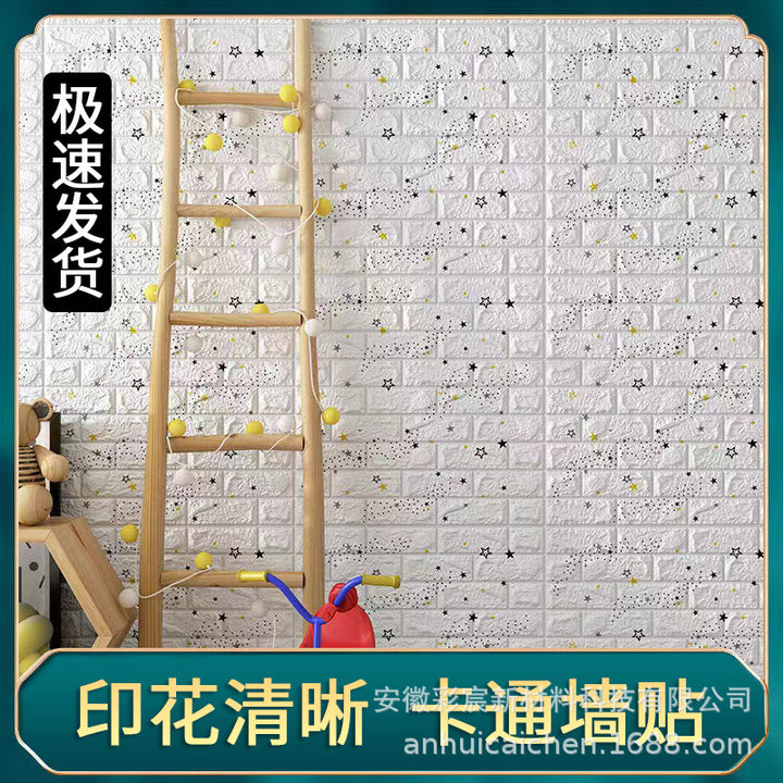 Wallpaper Self-adhesive waterproof and moisture-proof bedroom children's warm 3D three-dimens...
