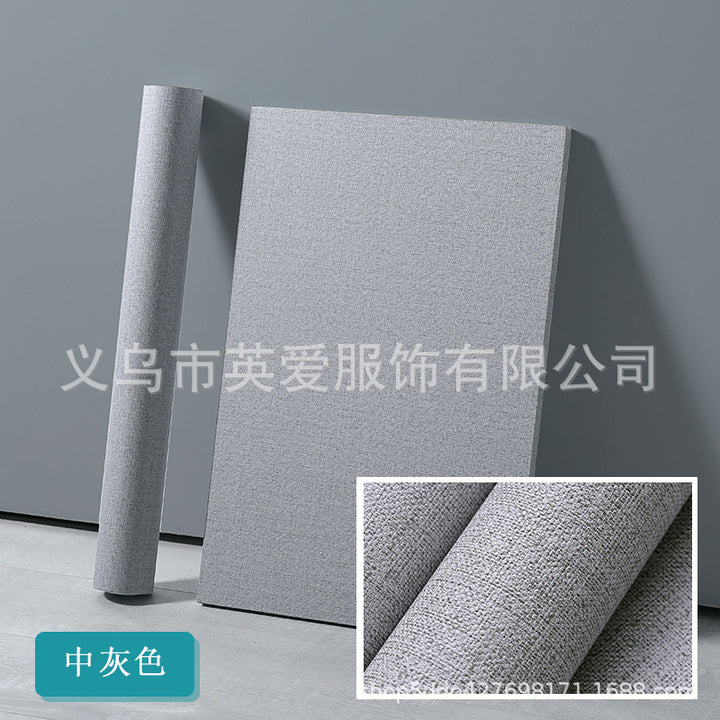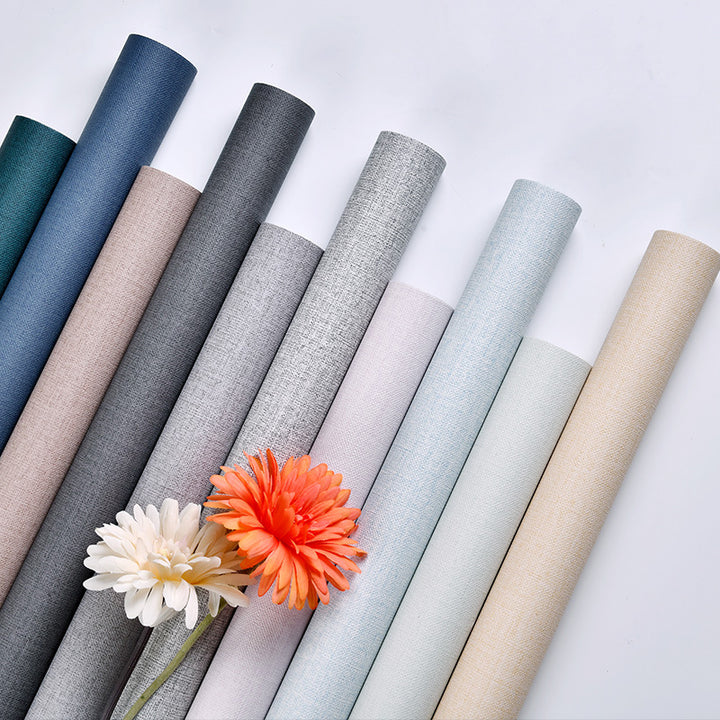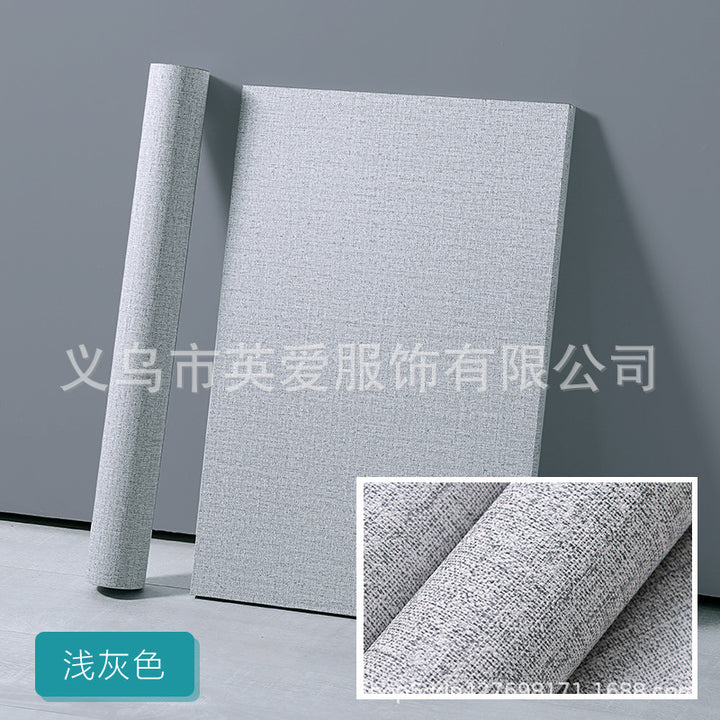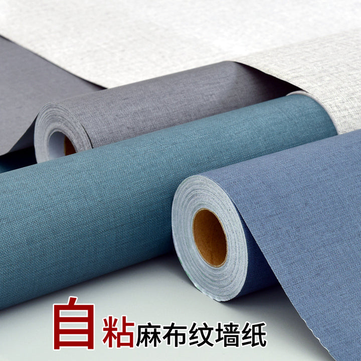 Wallpaper Self-adhesive waterproof and moisture-proof solid color linen cloth pattern living ...