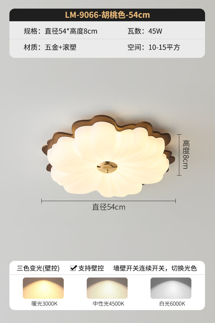 Walnut bedroom ceiling light medium antique solid wood petals full spectrum eye protection super bright book room children's room light