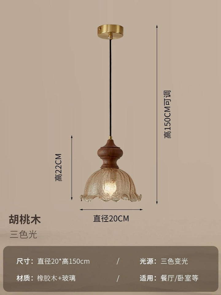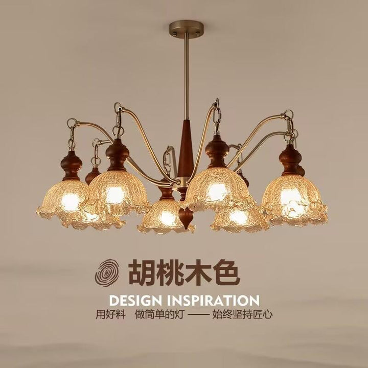 Walnut bedroom dining room light medieval living room Nanyang style French retro ice cracked glass multi-head chandelier