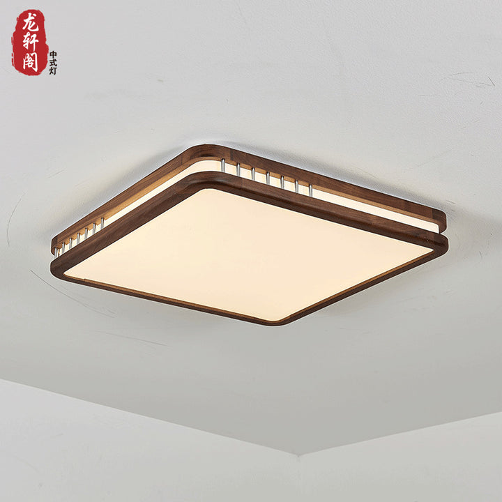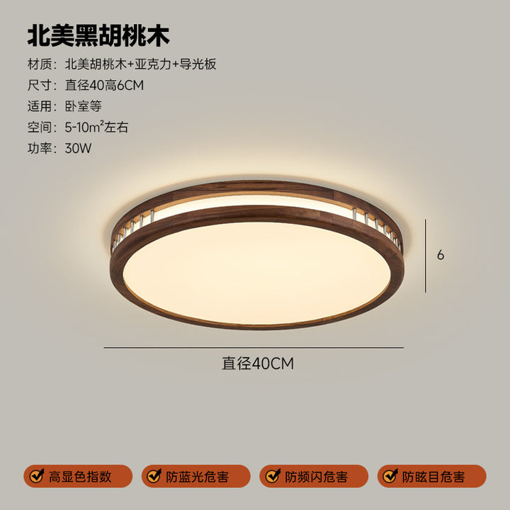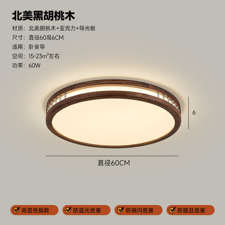 Walnut ceiling lamp New Chinese solid wood living room lamp Zen medieval style master bedroom lamp Full spectrum dining room lamp