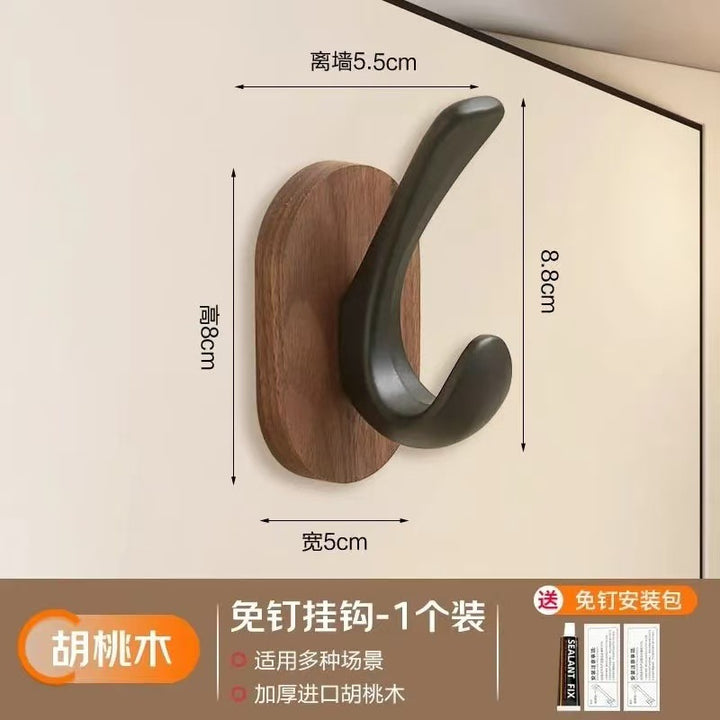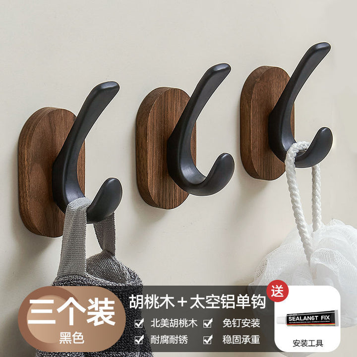 Walnut coat hook No punching, bathroom hook behind entrance door Hanging adhesive hook Bedroom creative hanging clothes hat hook