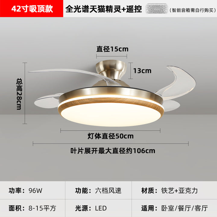 Walnut dining room fan light invisible fan light new simple advanced silent electric fan ceiling light living room light