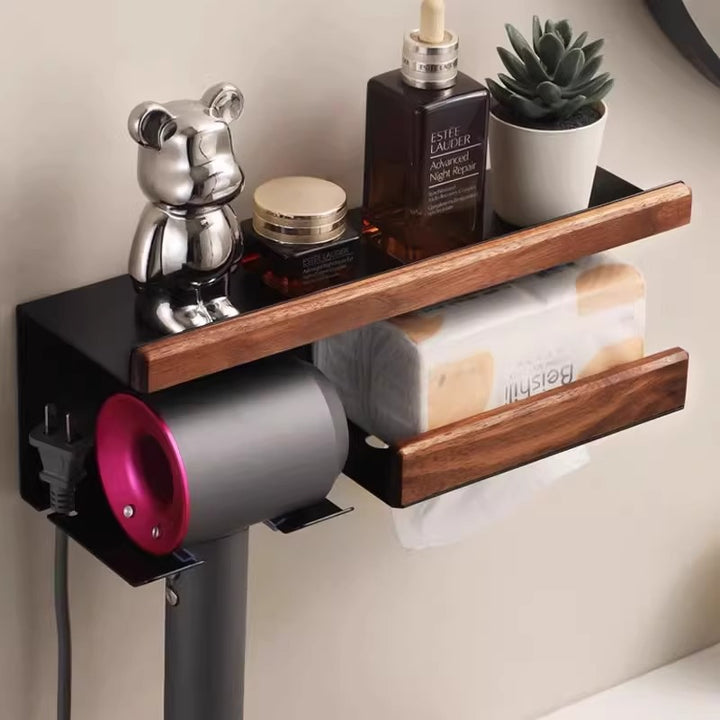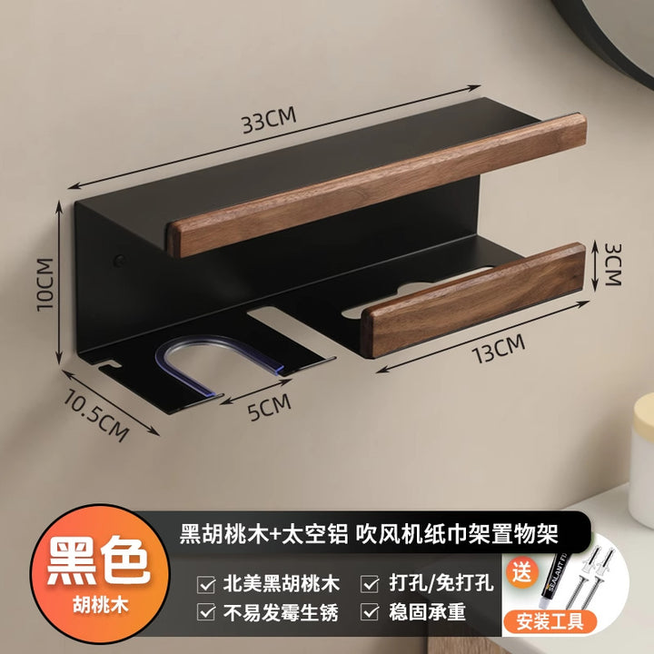 Walnut hair dryer rack, bathroom wall hanging, no punching bracket, hair dryer hanger, hair dryer storage rack