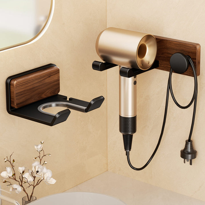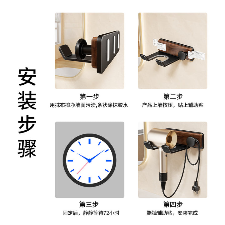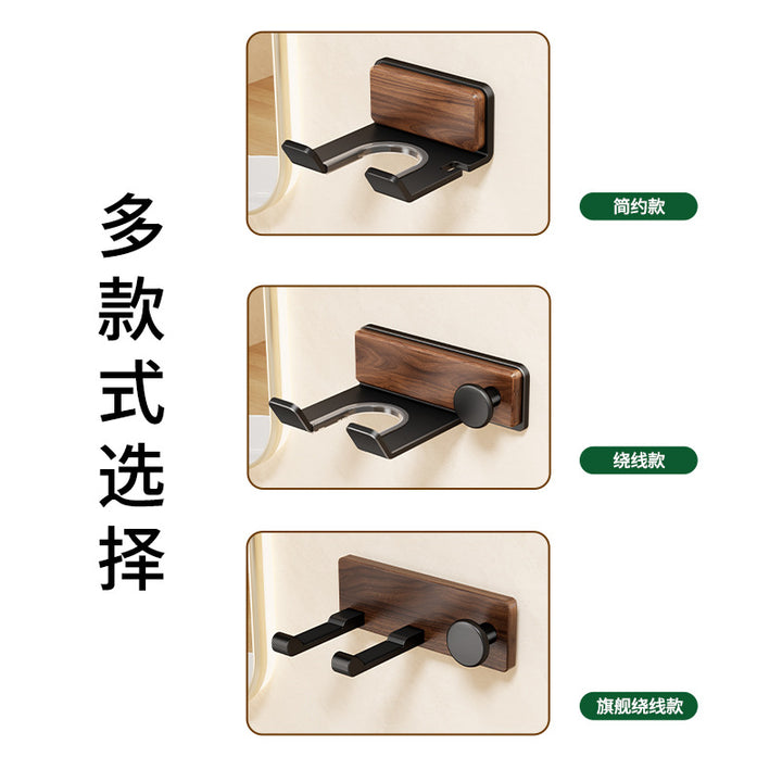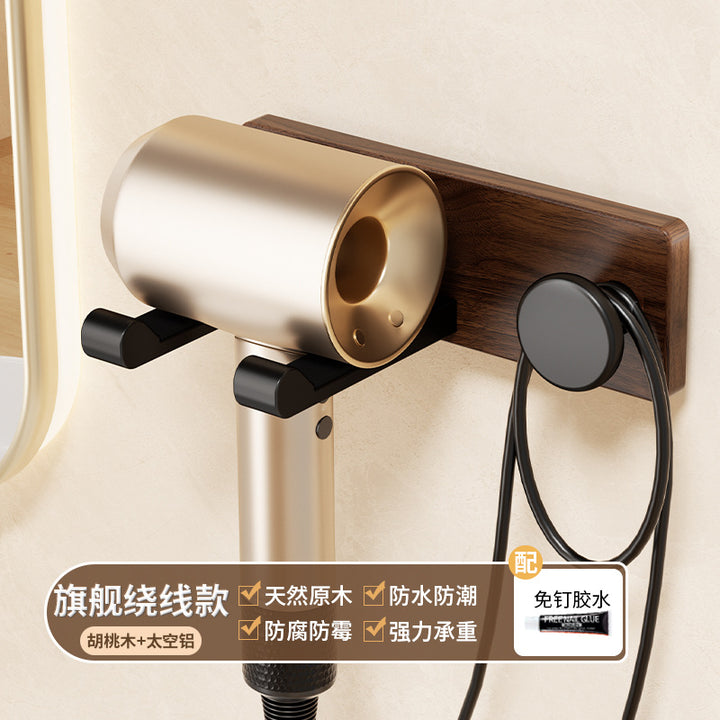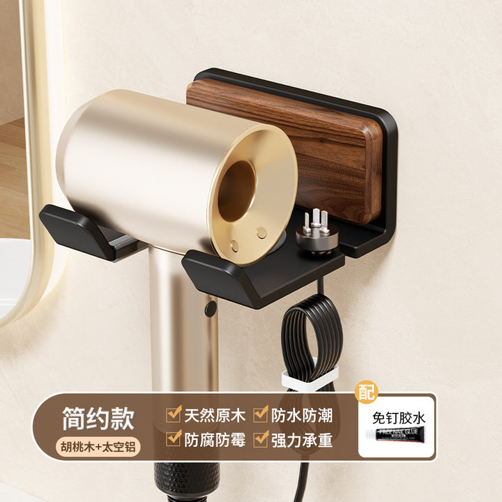 Walnut Hair Dryer Shelf No Punching Toilet Hair Dryer Storage Hanger Bathroom Wall Mounted Bracket