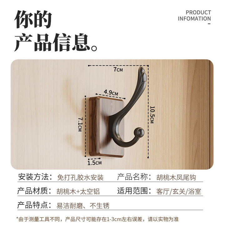 Walnut hook No punching wall hanging wall single hook entry door entrance entrance coat hook Clothes and hat door adhesive hook