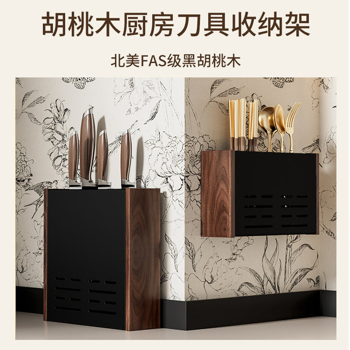 Elegant Black - Walnut Knife Holder (Dual Use), Elegant Black - Walnut Chopstick Cartridge (Dual Use), 2-piece set [chopstick cartridge + knife holder] elegant black - walnut (dual-use) |