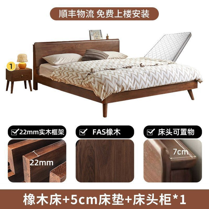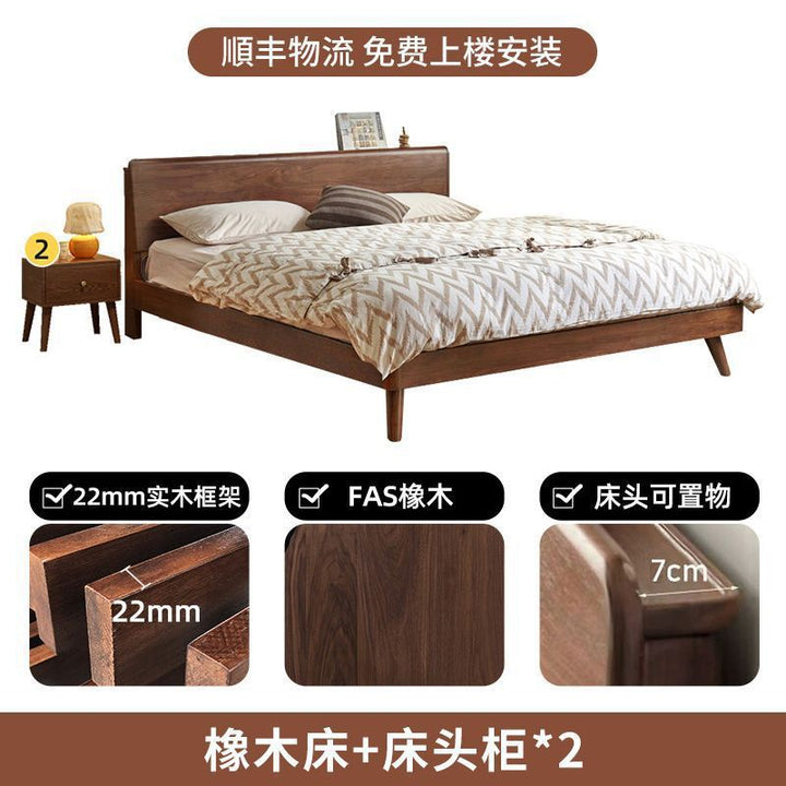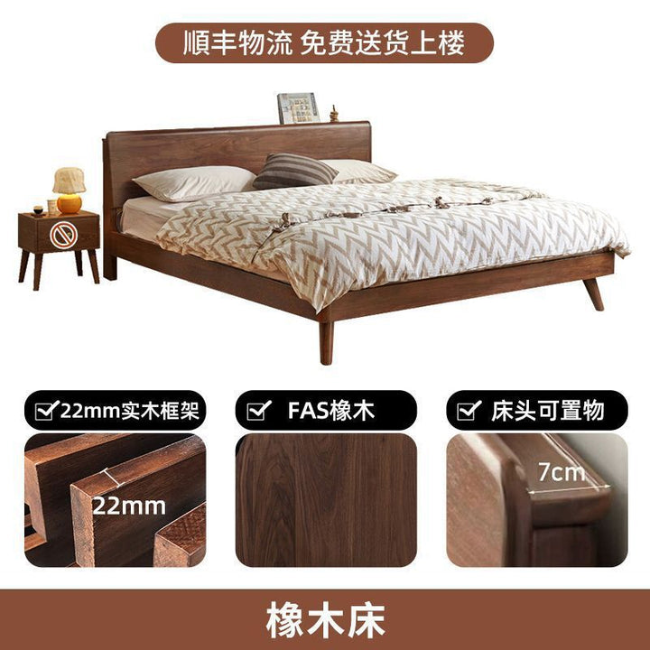 Walnut light luxury minimalist oak bed solid wood bed modern 1.5m single bed 1.8m master bedroom 1.2m single bed rack