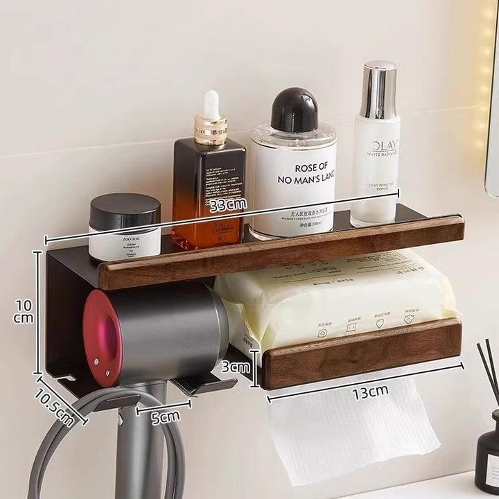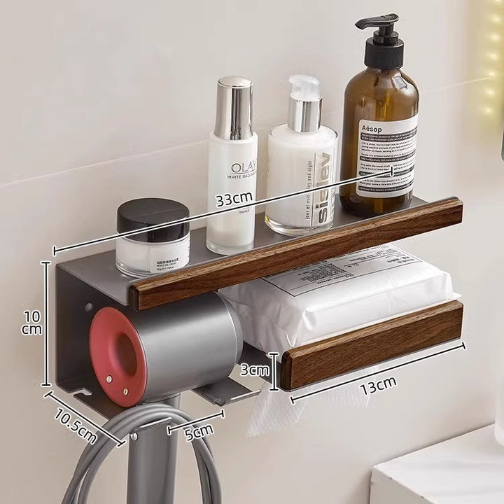 Walnut non-punching electric hair dryer bracket hair dryer wall hanger toilet toilet storage shelf storage artifact