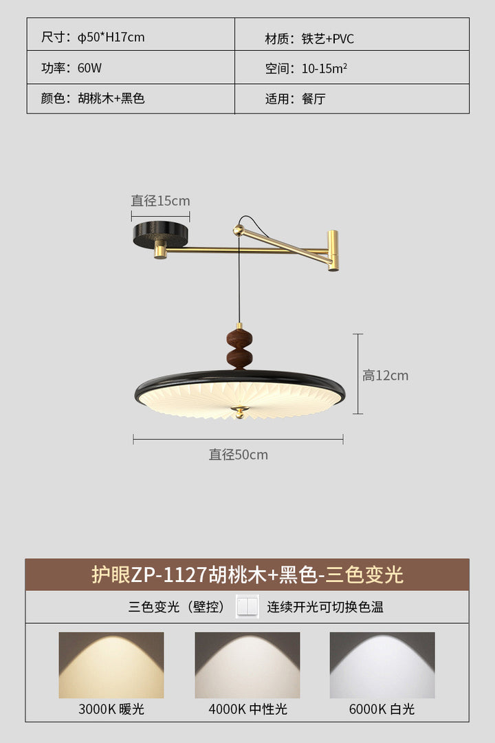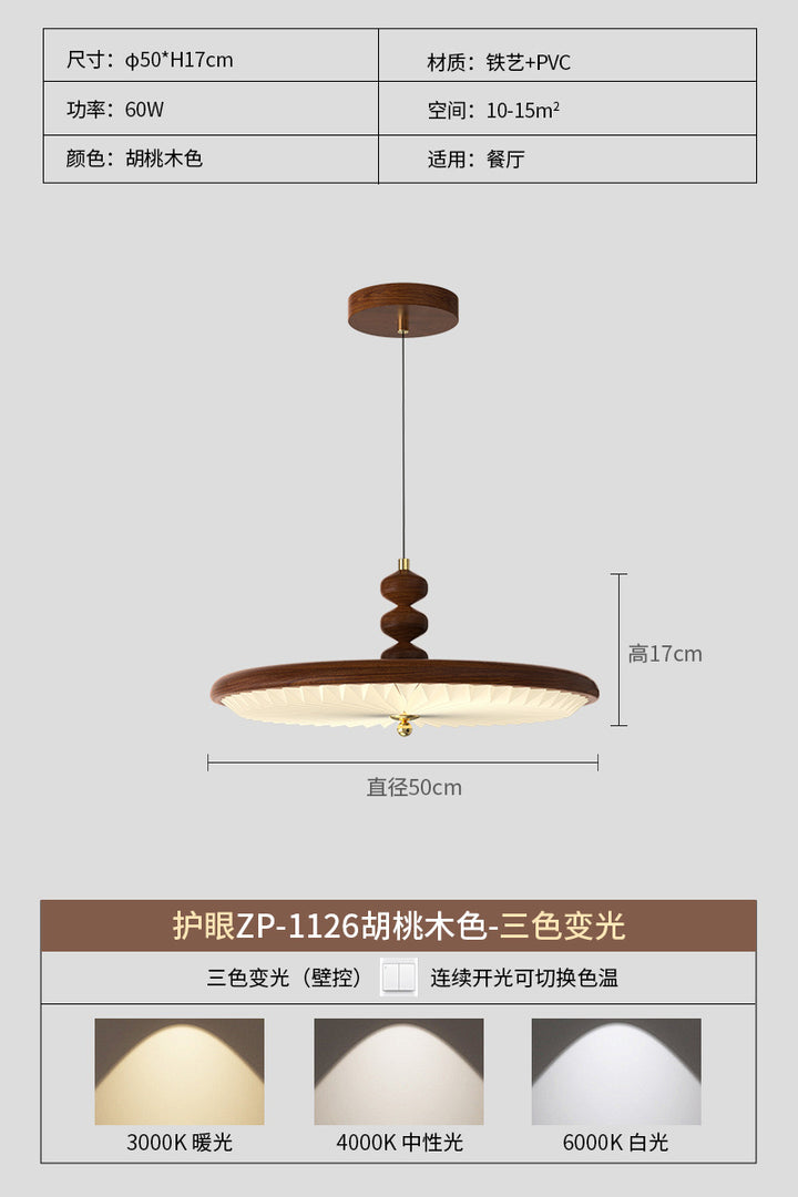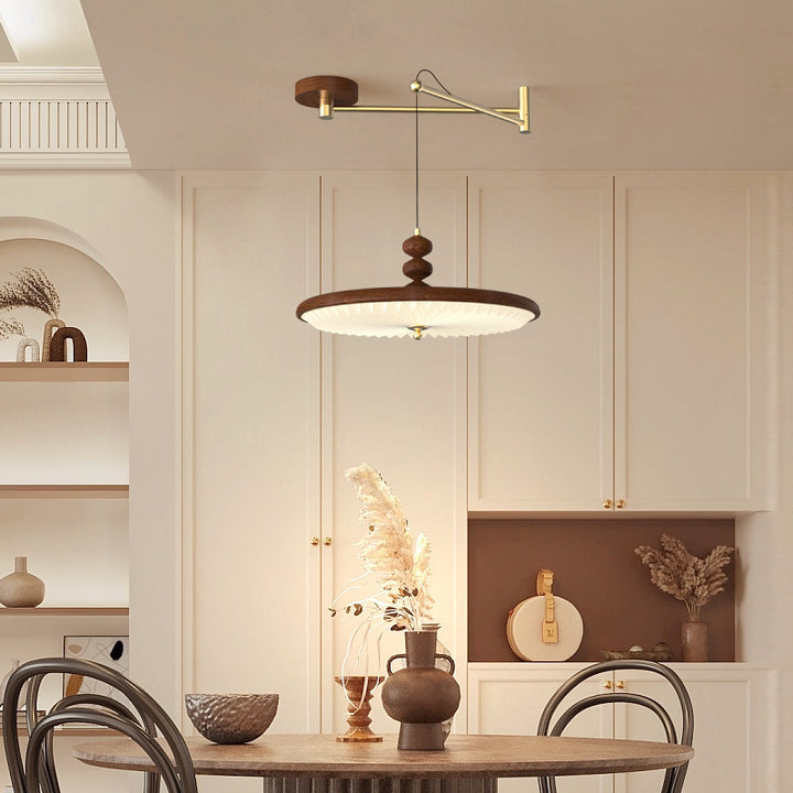 Walnut pleated antique restaurant light simple American retro bedroom light bar eye protection rocker chandelier