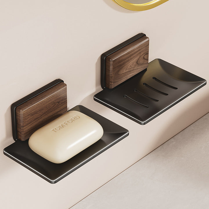 Walnut Soap Box Bathroom Soap Box Non-punching Wall-mounted Space Aluminum Toilet Drain Soap Rack Soap Box
