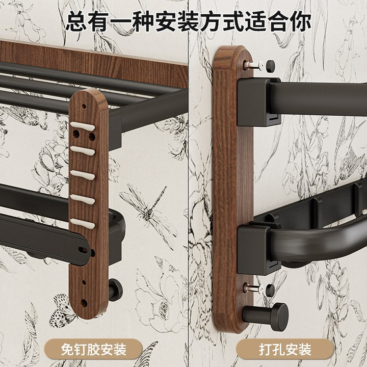 [North American Black Walnut] Upgraded Double Folding Towel Holder 50CM with 4 Hooks, [North American Black Walnut] Upgraded Double Folding Towel Holder 60CM with 5 Hooks |