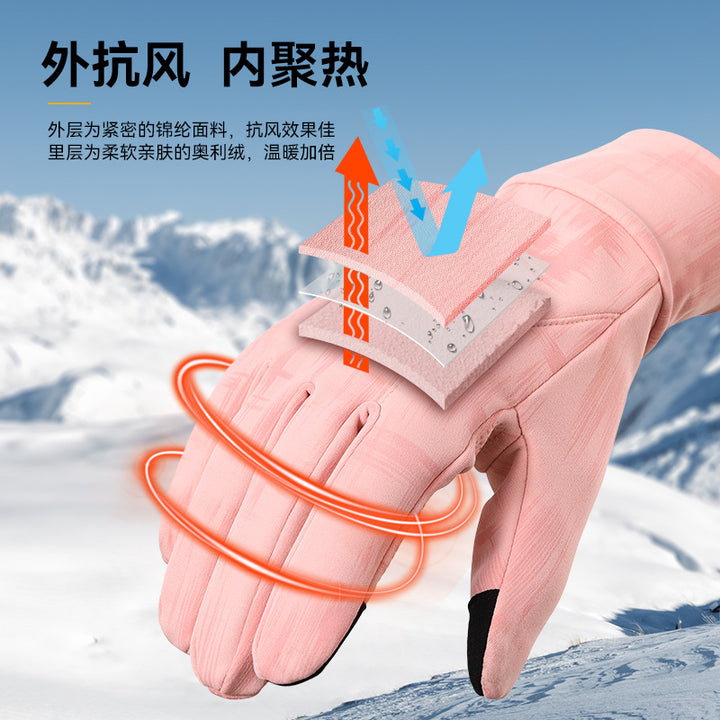 Warm gloves Women's cycling Winter sports Fleece gloves Outdoor riding Running Windproof and ...