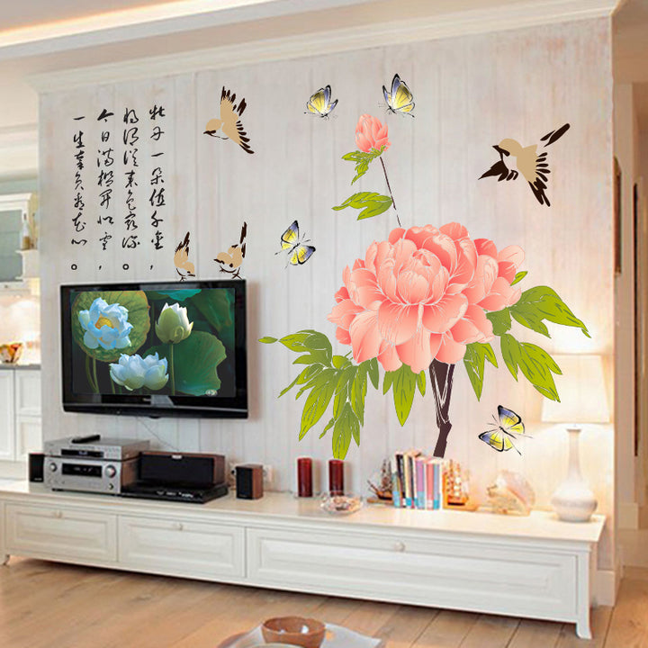Warm Peony Blossom Wall Sticker Bedroom Livin...