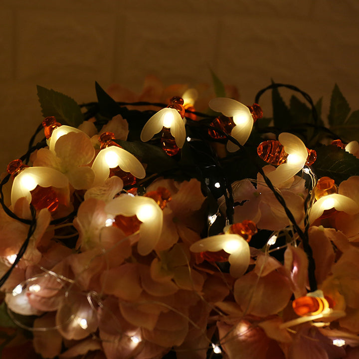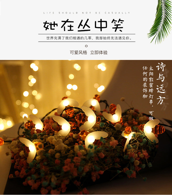 Warm white bee solar light string, outdoor garden decorative light string, Christmas day modeling light wholesale