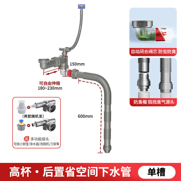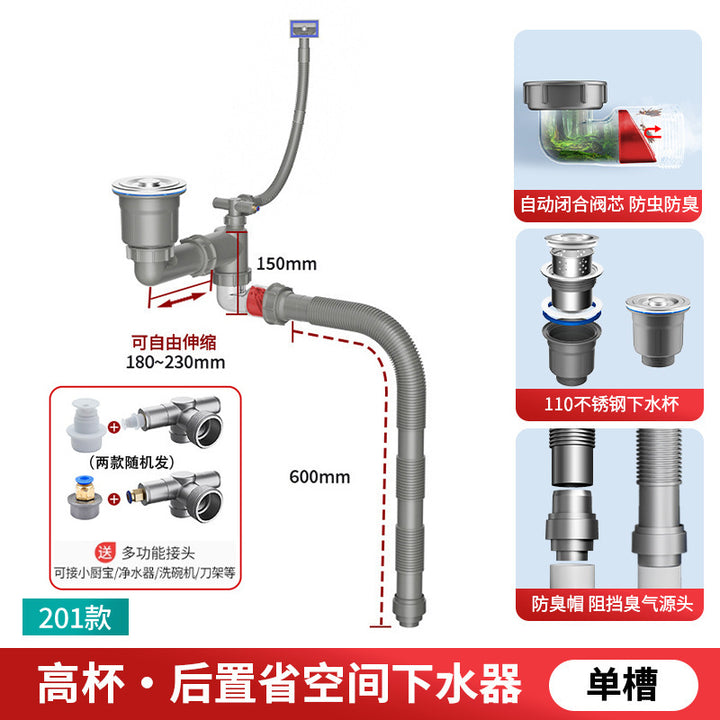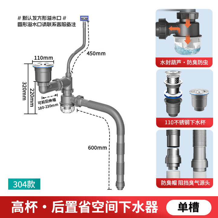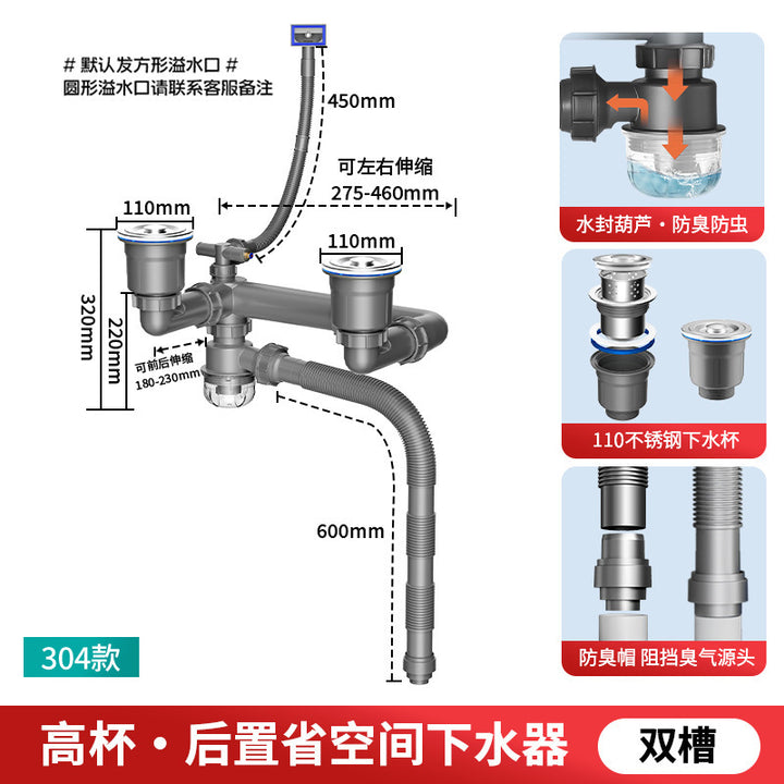 Washbasin 304 stainless steel double slot sewer, kitchen basin, vegetable basin, deodorant wash basin, sewer pipe wholesale