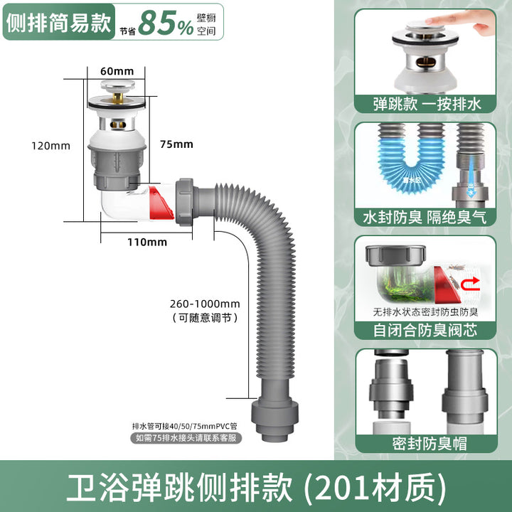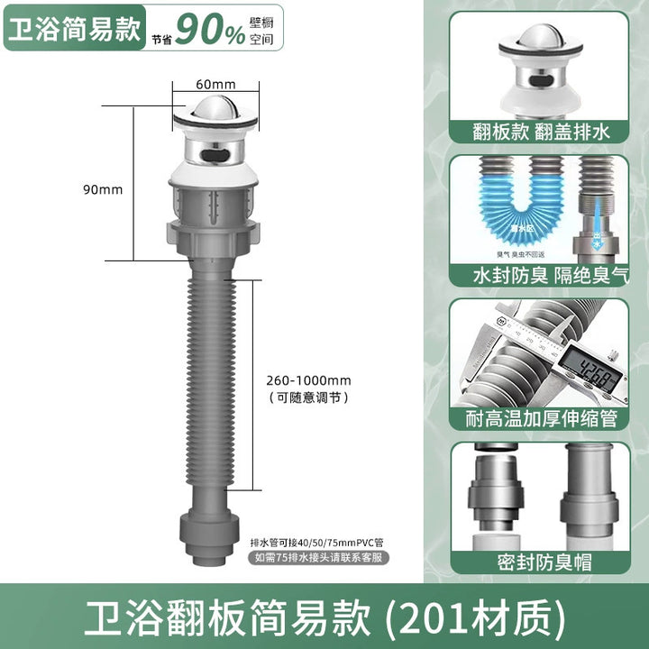 Washbasin bouncing core sewer, washbasin sewer set, bathroom, bathroom, anti-blocking and deodorant sewer wholesale