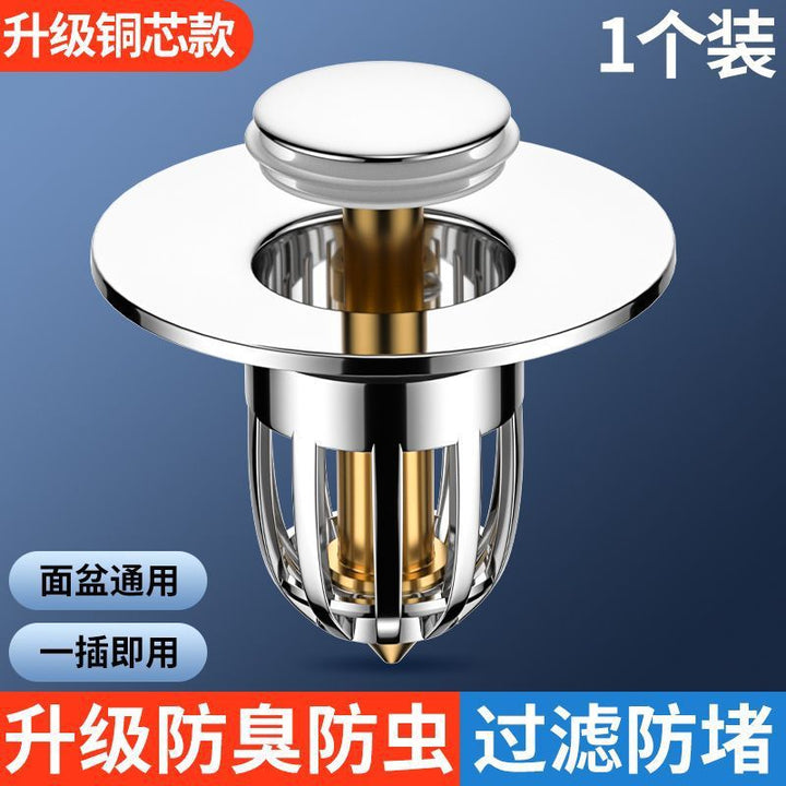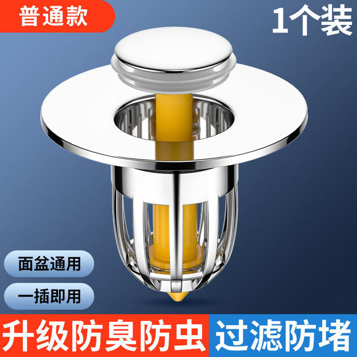 Washbasin leakage plug press type flip anti-plug deodorant bounce sewer washbasin accessories drainage universal model