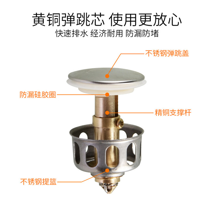 Washbasin sewer bouncing core wash basin basin stainless steel bouncing deodorant bouncing co...