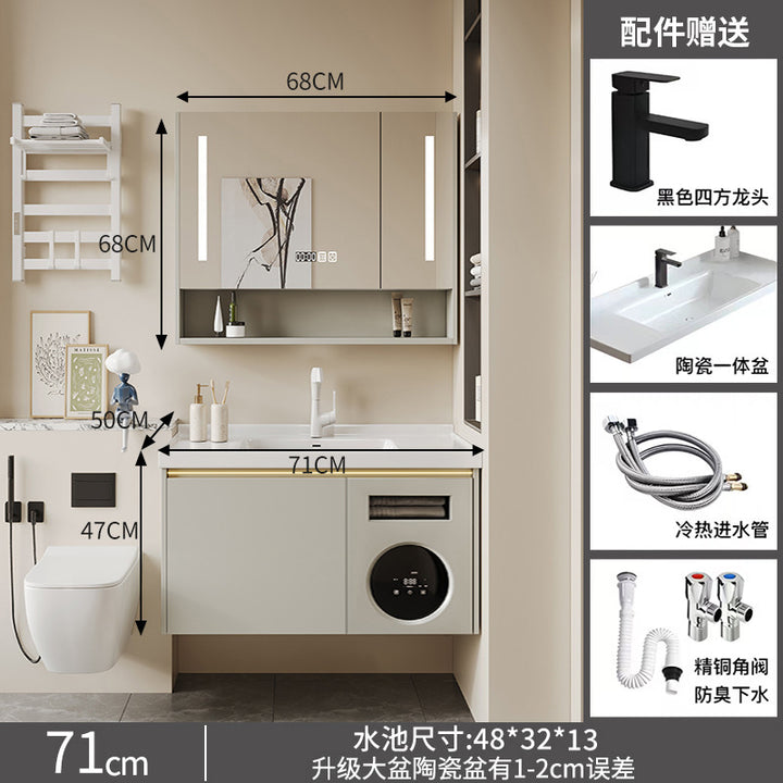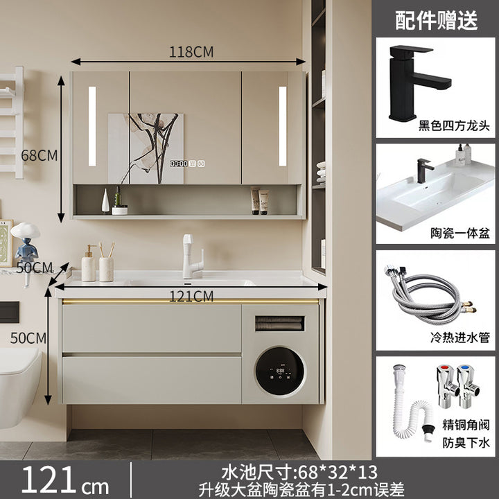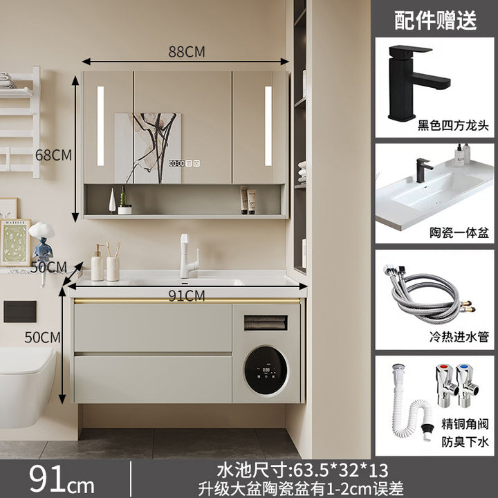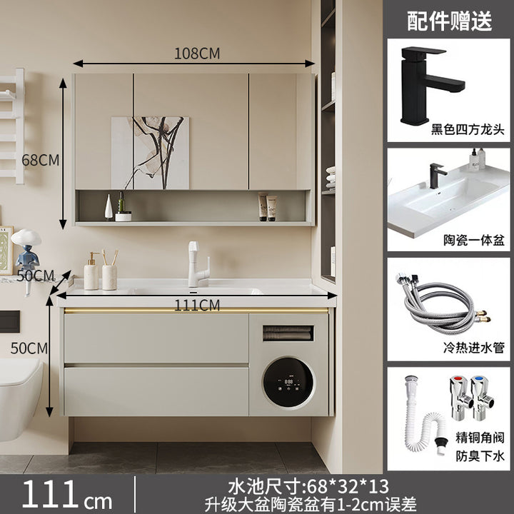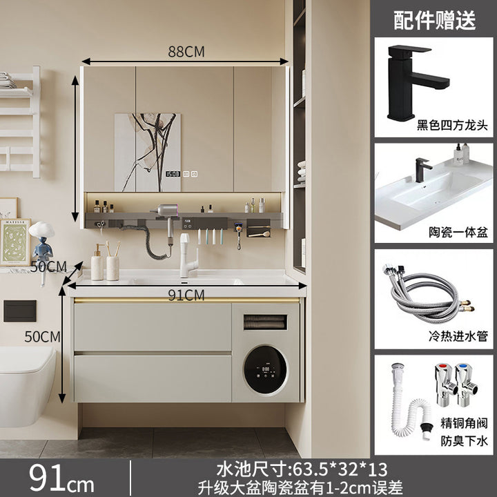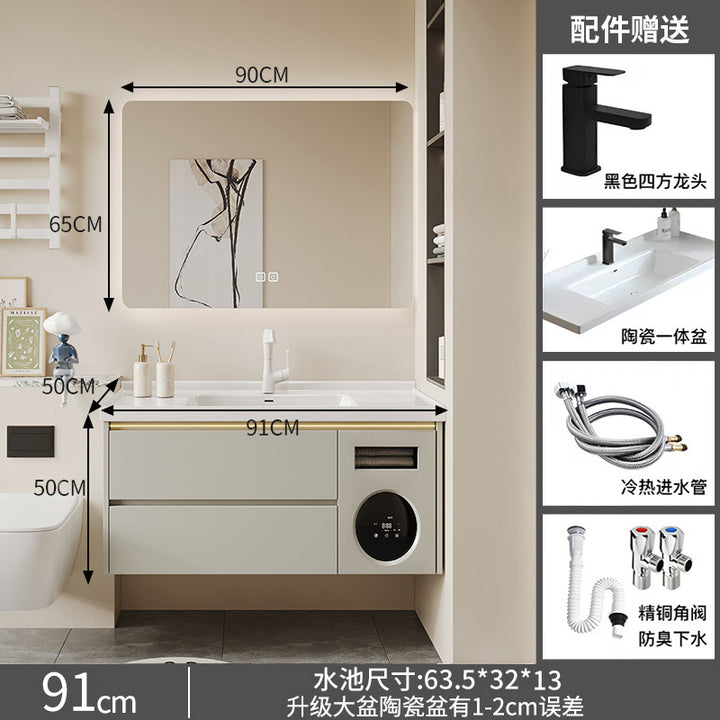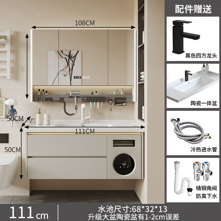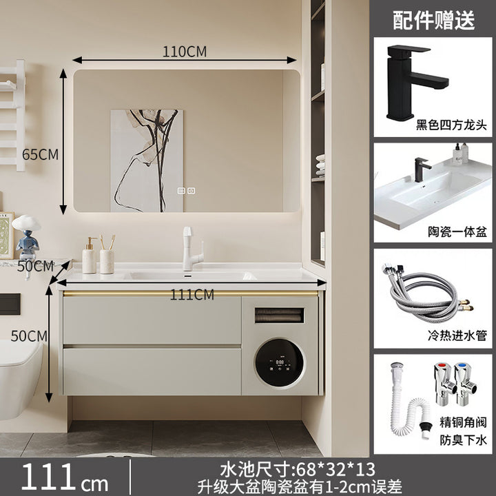 Washing and drying integrated solid wood bathroom cabinet with small washing machine, hand washing and face washing ceramic basin, bathroom multi-f...