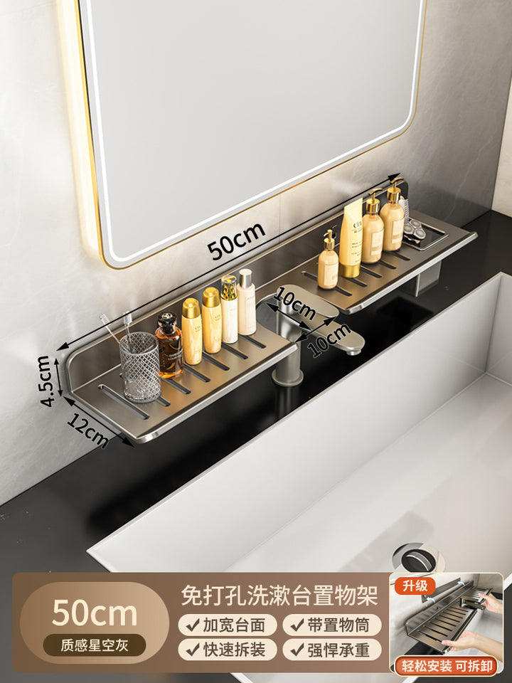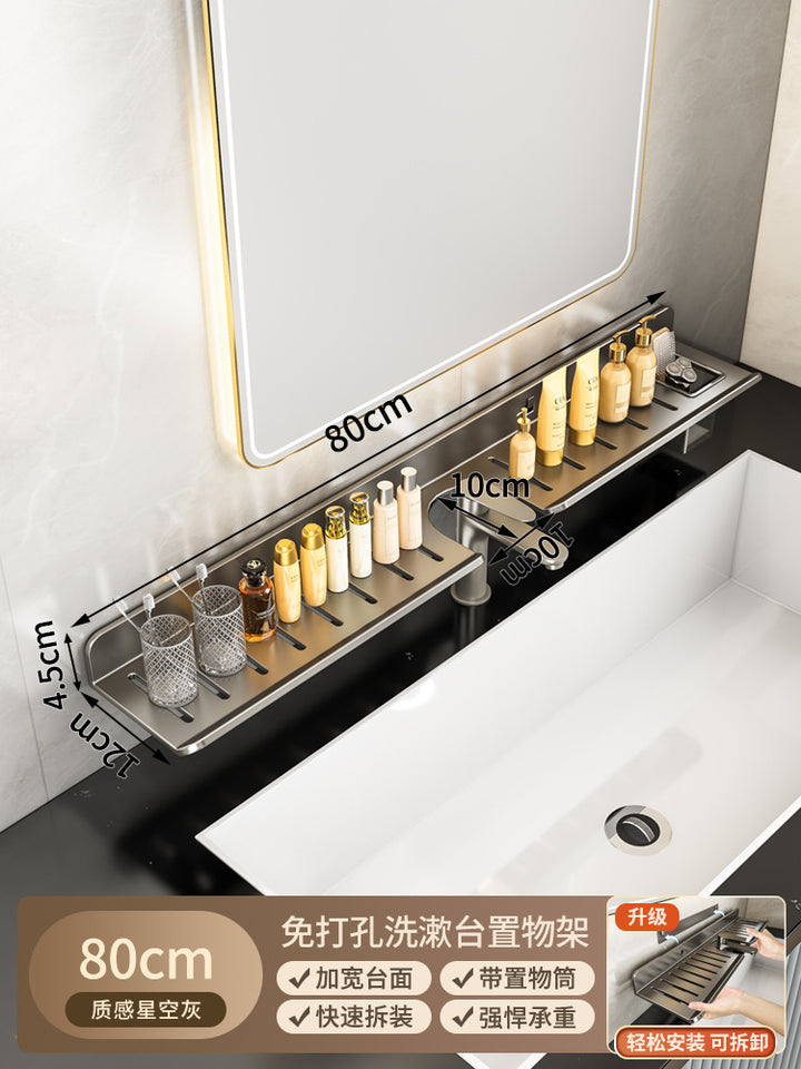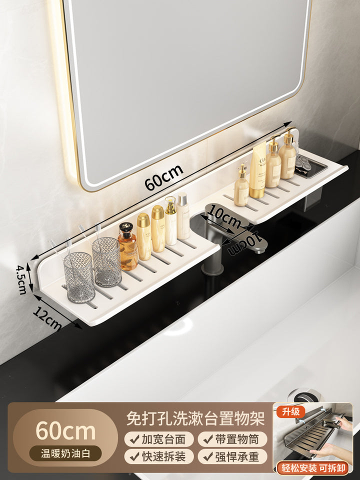 Washstand Shelf Mirror Front Faucet Washstand Washbasin Wall Hanging No Punching Storage Bathroom Toilet