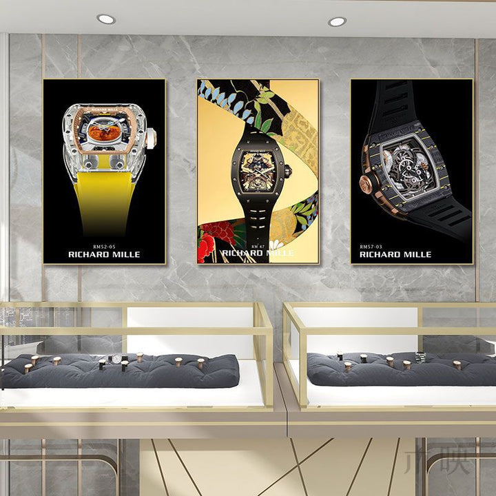 Watch store, decorative painting, famous watch repair and recycling line, franchised store, background wall painting two luxury advertising, watch ...
