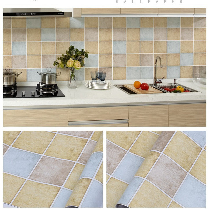 Waterproof self-adhesive wallpaper kitchen oil-proof bathroom bathroom wall sticker balcony w...