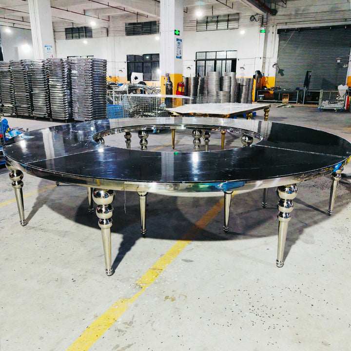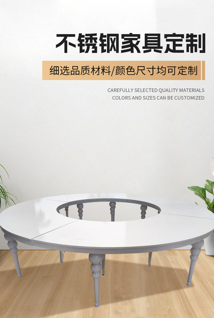 Wedding catering furniture Stainless steel serpentine dining table Semi-round table Tempered glass splicing large round table combination
