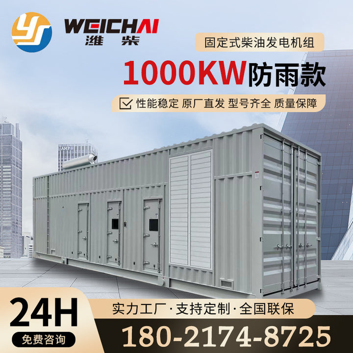 Weichai 1000kw container diesel generator, fixed rainproof hospital hotel school factory dire...