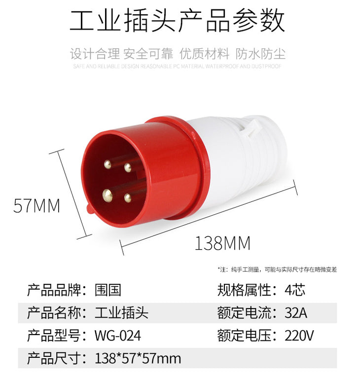 Weiguo Electric WG-024 European standard industrial plug socket 32a4p waterproof 380V three four-wire factory direct sales