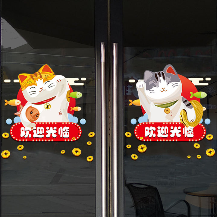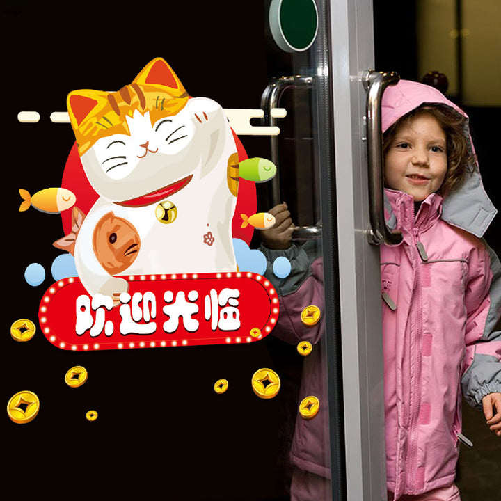 Welcome cat wall sticker shopping mall store, welcome to window glass sticker self-adhesive New Year Spring Festival wall sticker XH6248
