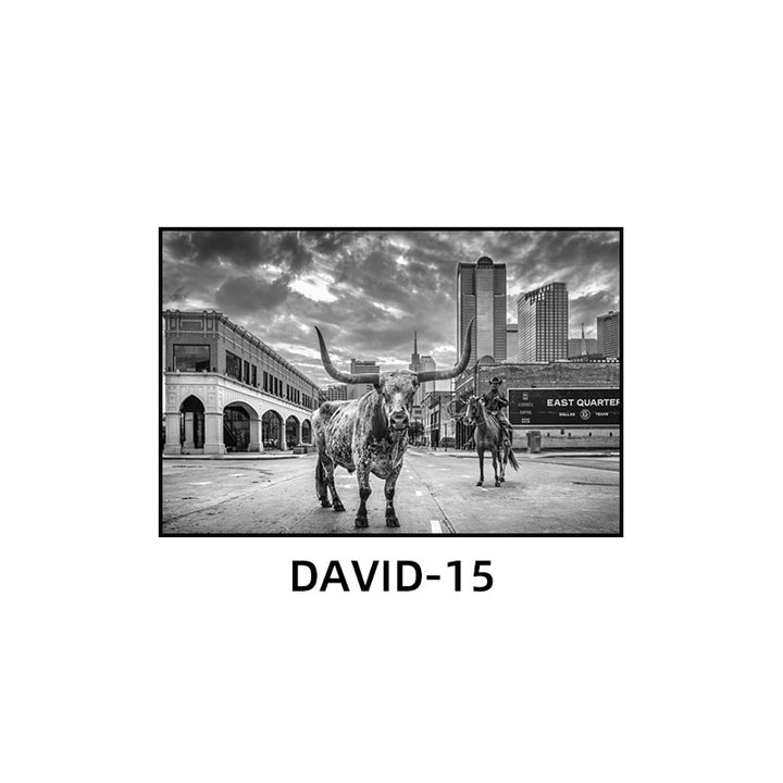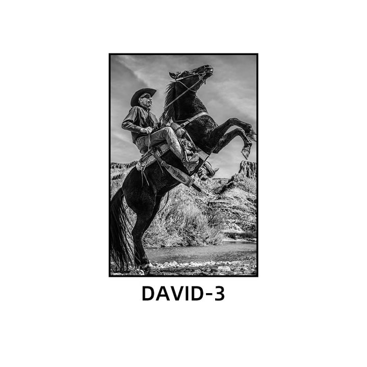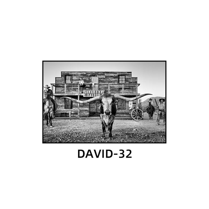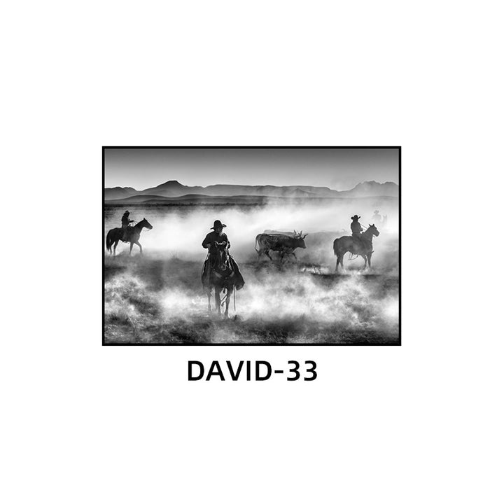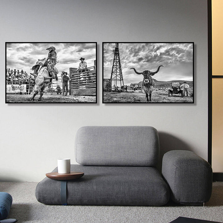 Western cowboy bullfight decorative painting black and white industrial style tavern bar hanging painting American retro cafe mural