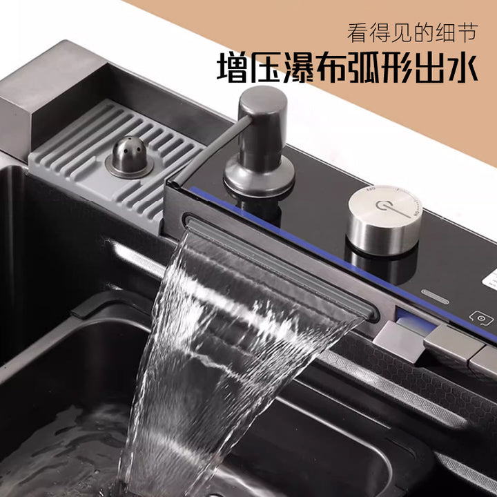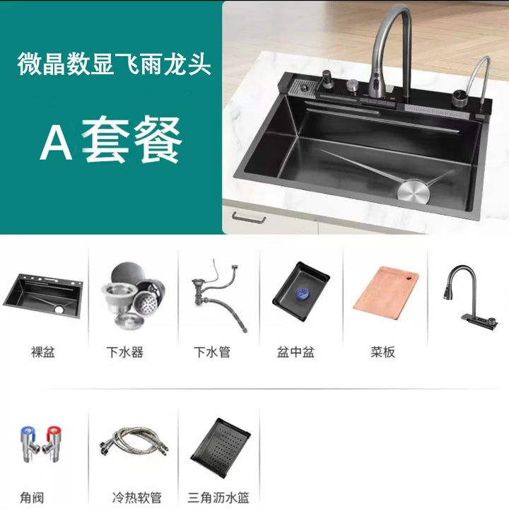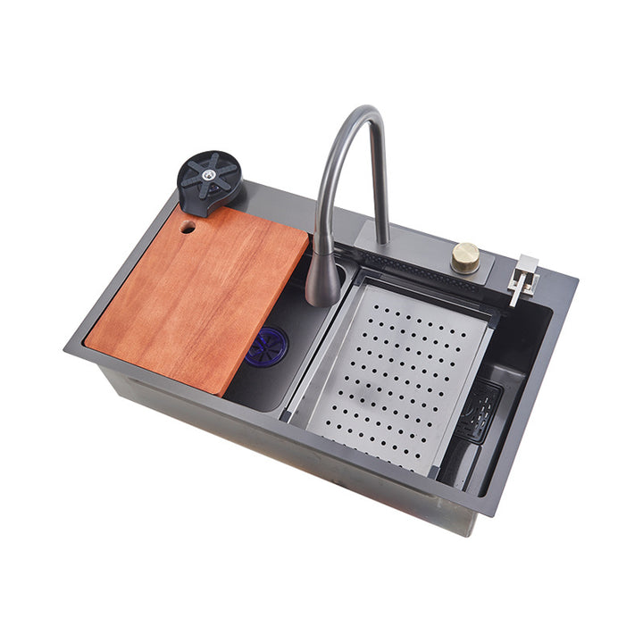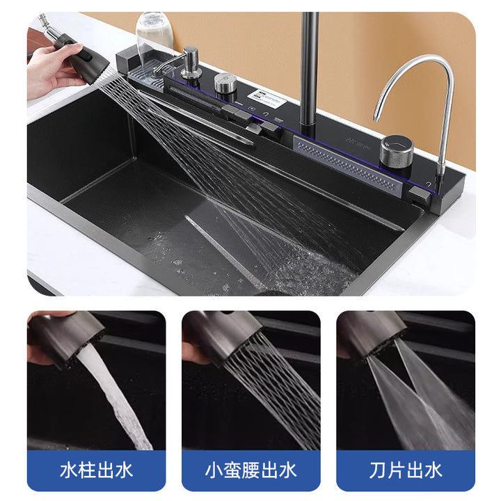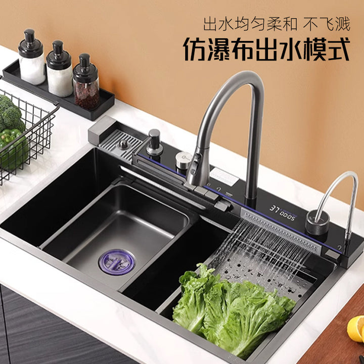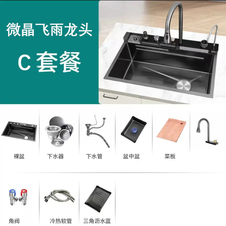 Whale Flying Rain Waterfall Sink Large Single Sink Honeycomb Stainless Steel Vegetable Sink Kitchen Dishwashing Sink Multifunctional Sink