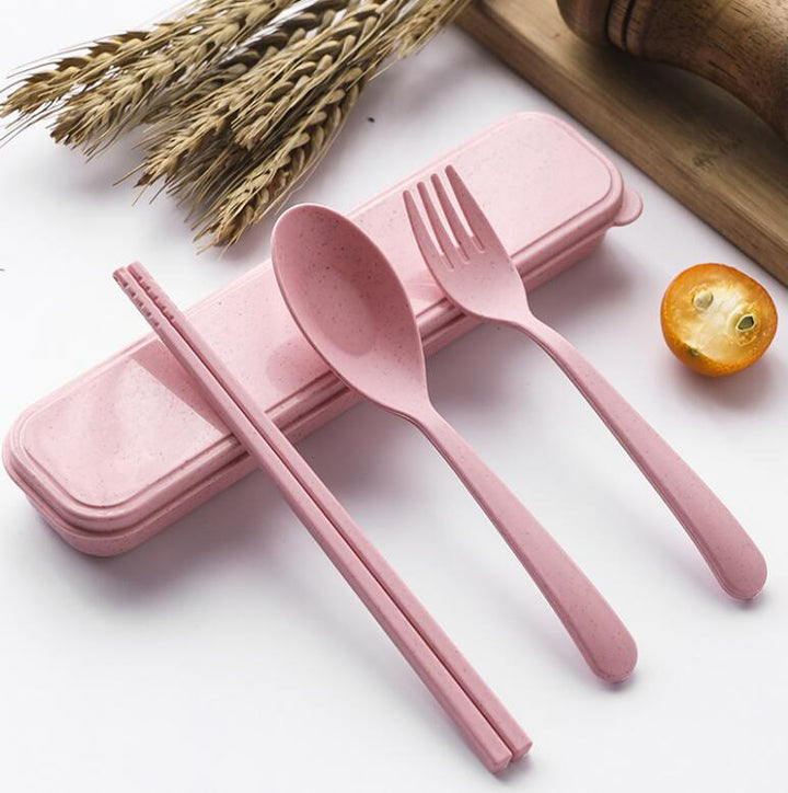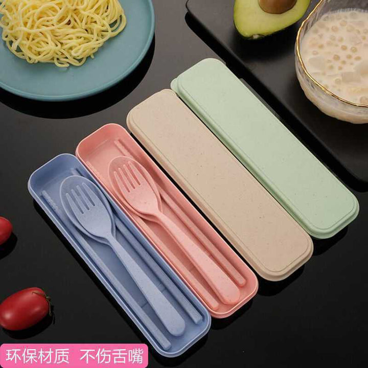 Wheat straw chopsticks fork spoon three-piece set to work portable tableware set student travel box lunch spoon chopsticks fork