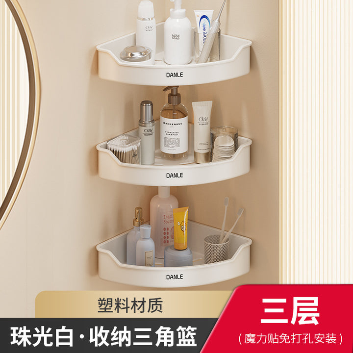 White bathroom rack No punching toilet Suction cup Wall-mounted toilet Wash table Storage corner triangular basket