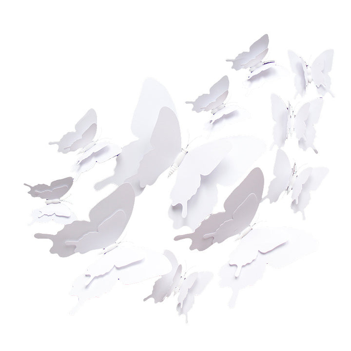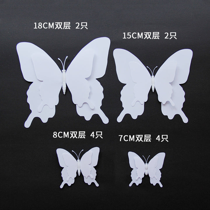 White butterfly double layer 12 3D three-dimensional butterfly wall sticker party wedding arrangement home decoration simulation butterfly decoration