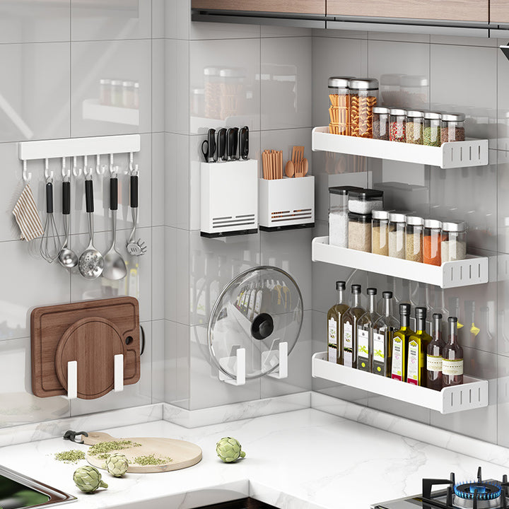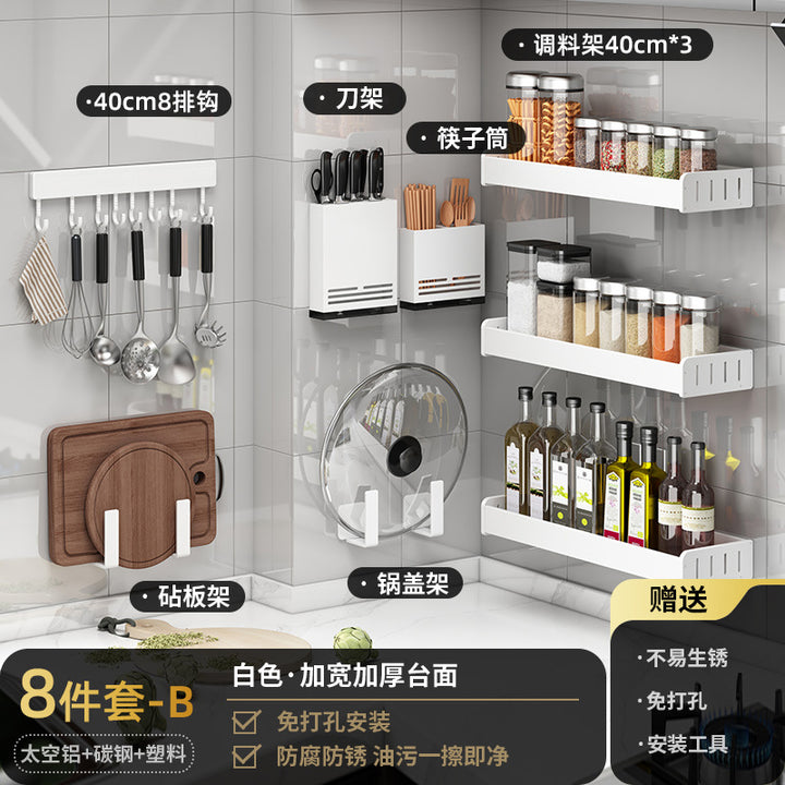 White kitchen rack No punching Wall-mounted multi-layer seasoning seasoning rack Kitchenware storage rack