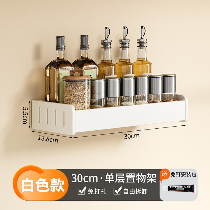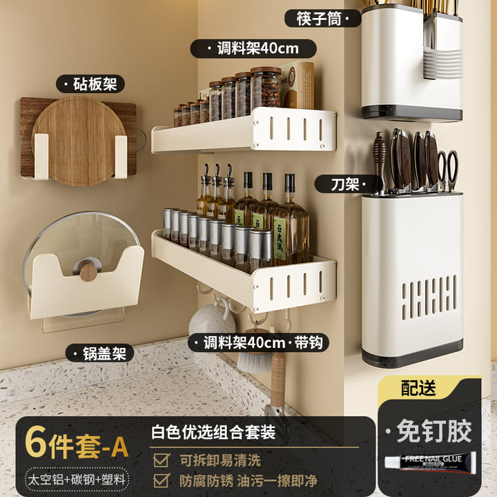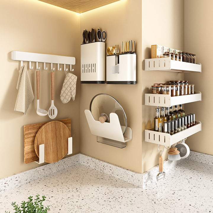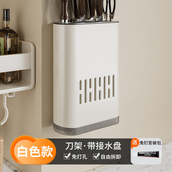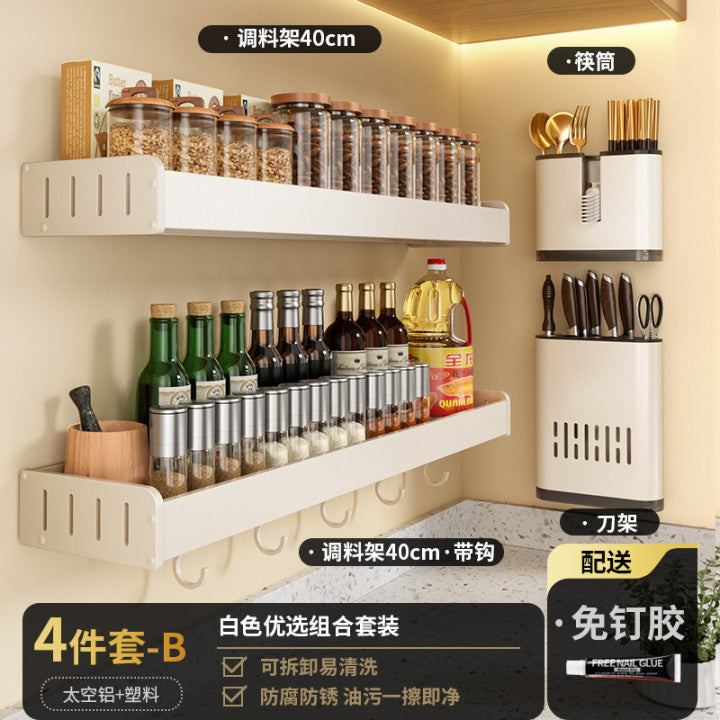 White Kitchen Shelf No Punching Wall Mounted Knife Holder Supplies Daquan Household Multifunctional Storage Seasoning Shelf