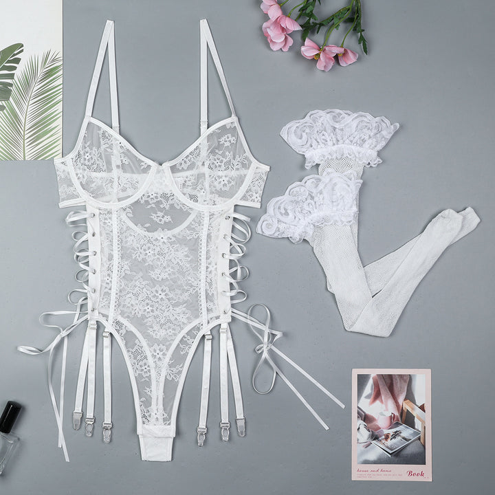 White light lace cross strap hollow ribbon ad...