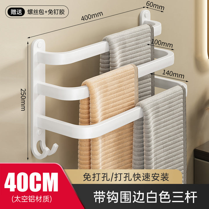 White towel rack, no punching toilet, wall-mounted bathroom, towel hanger, rack, toilet stora...