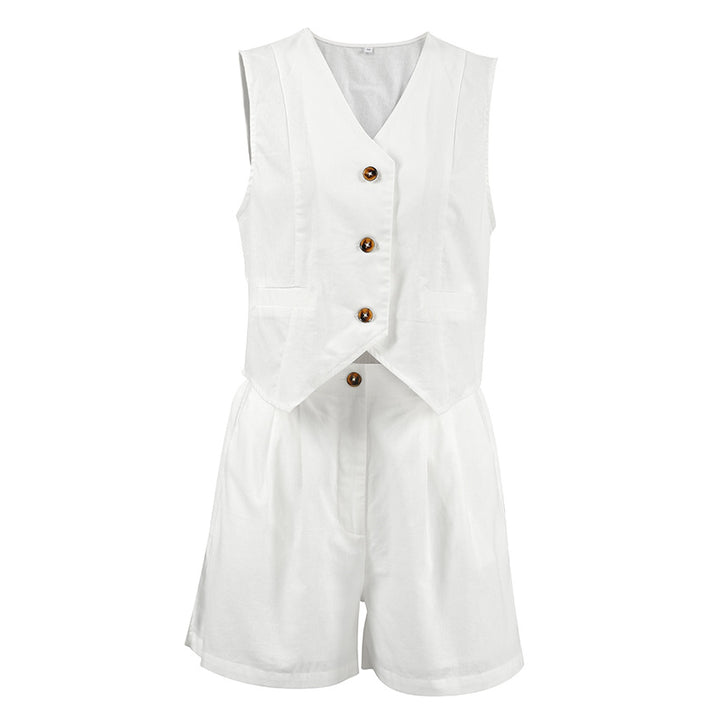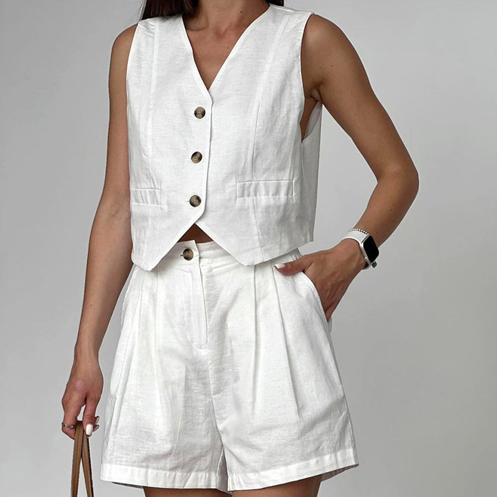 White V-neck cotton and linen sleeveless vest casual suit 2025 European and American spring fashion two-piece set women