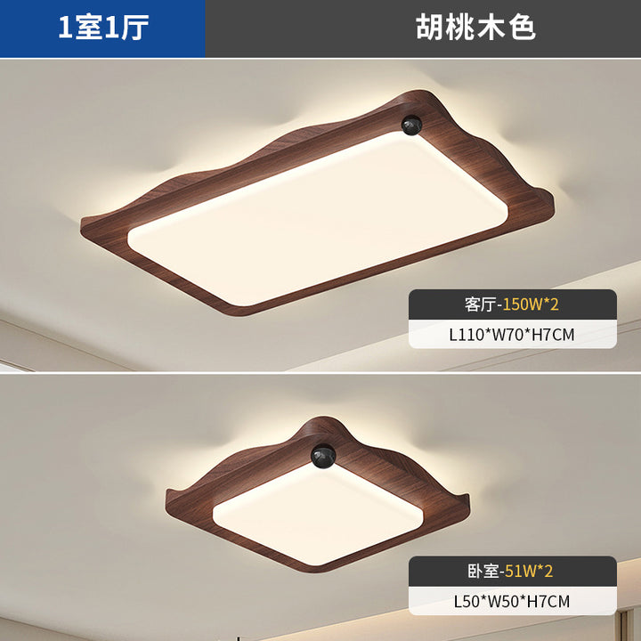 Whole house lighting combination package Living room light Ceiling light Medium antique walnut color rectangular rotunda main light