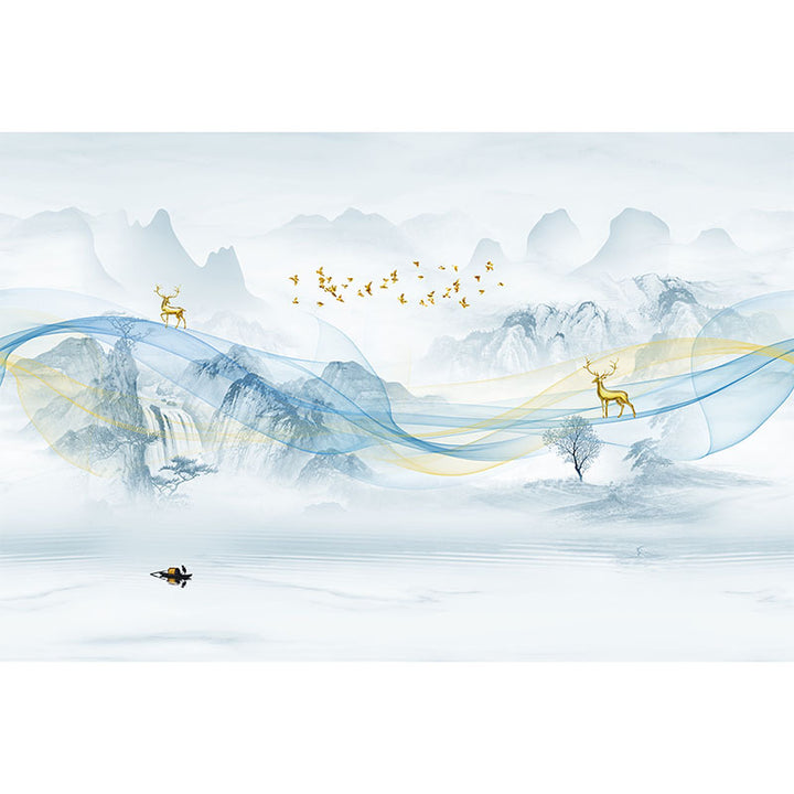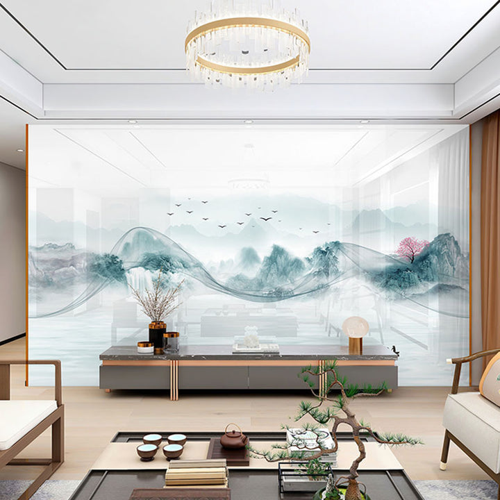 Whole house living room integrated wall panel new Chinese light luxury imitation marble TV background wall landscape painting carbon crystal panel ...